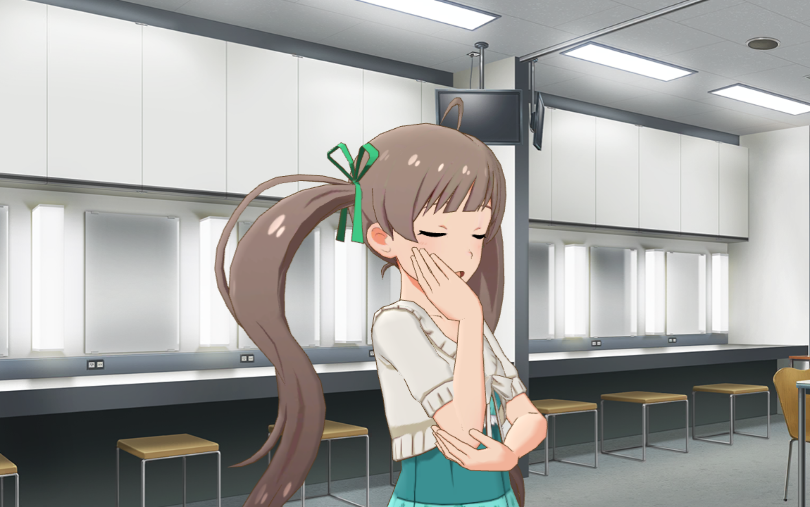 세리카_ 하암…… 으으. 아, 프로듀서님, 수고 많으세요.