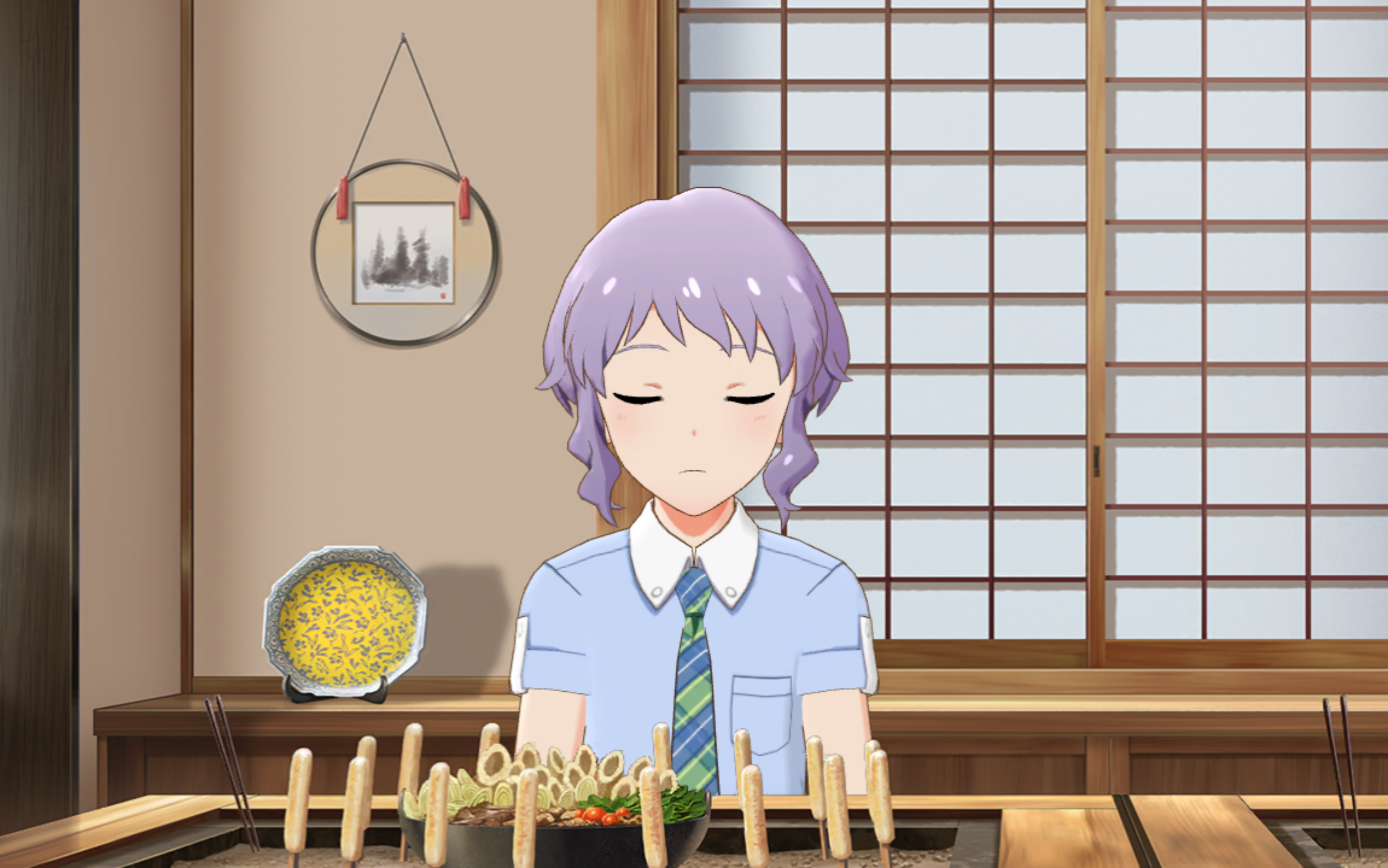미즈키_ 냠냠. 뜨거. 뜨거워라…… 그래도 정말로 맛있는 키리탄포에요.