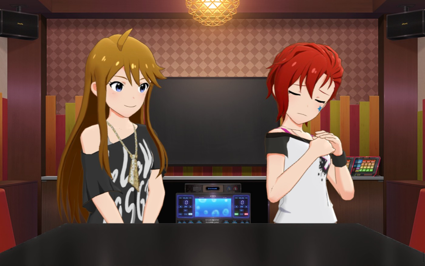 프로듀서_ (줄리아와 메구미에게 붙잡혀 여기저기 돌아다니고 있다…… 지금은 노래방에 왔다.)