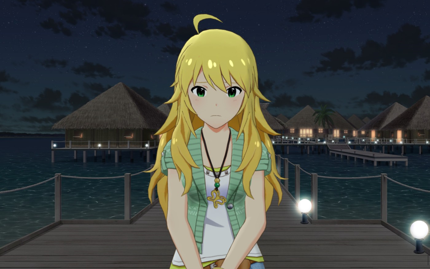미키_ 그런데 밤이 훨씬 예쁘네! 바다가 반짝반짝 빛나는게 로맨틱한거야……♪