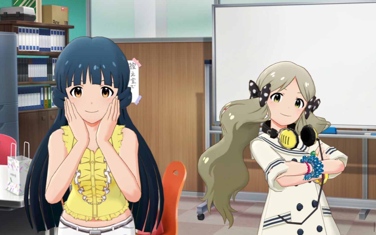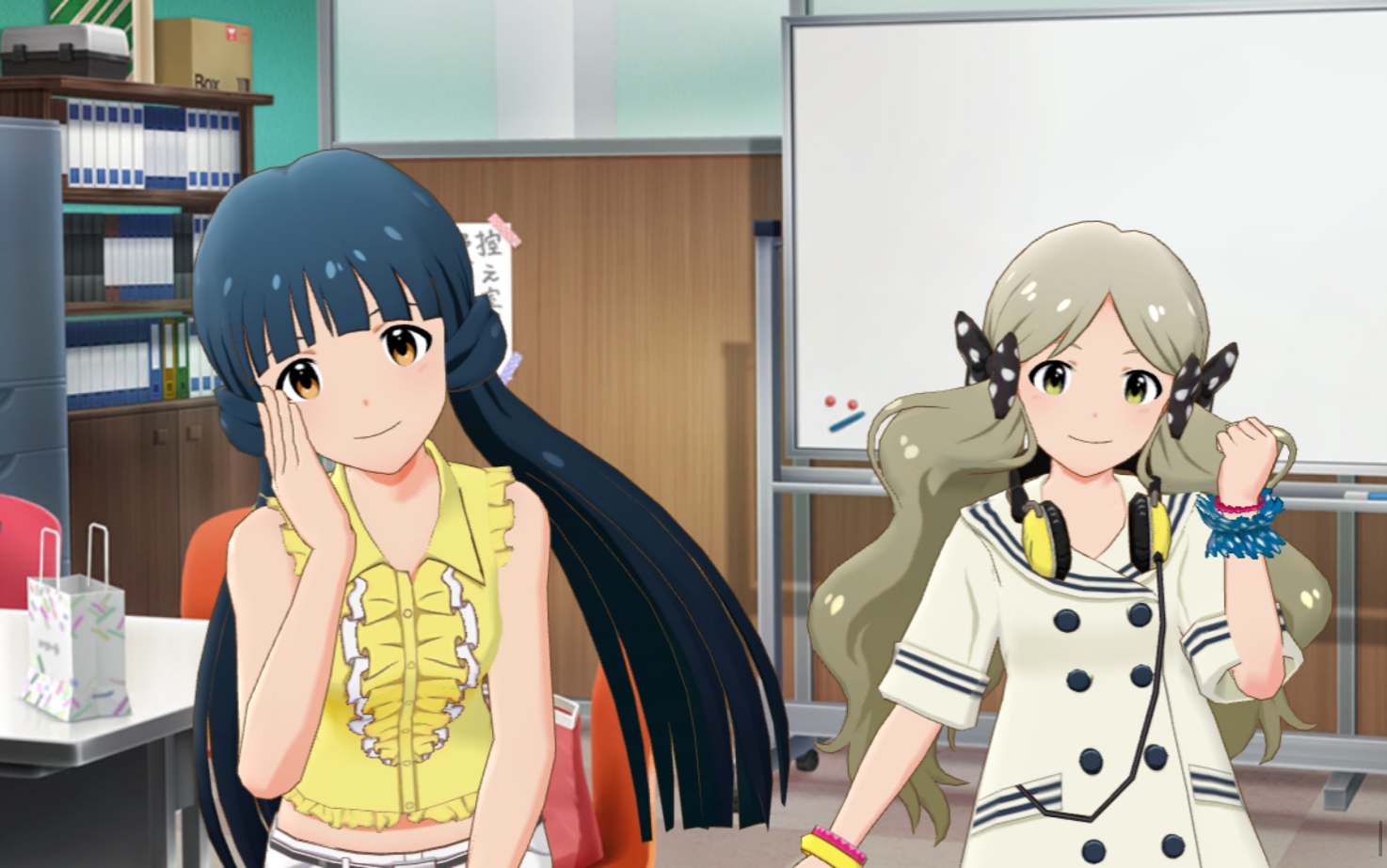 레이카_ 아, 프로듀서님. 수고 많으세요. 괜찮아요, 기다리지는 않았답니다. 방금 막 왔어요♪