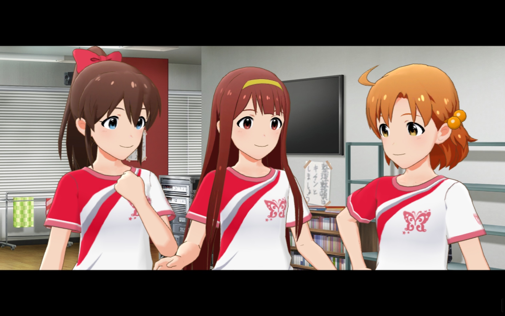 프로듀서_ (오늘 스케쥴은 메구미와 엘레나가 취재. 미나코, 카나, 코토하 3명은 연습이다)
