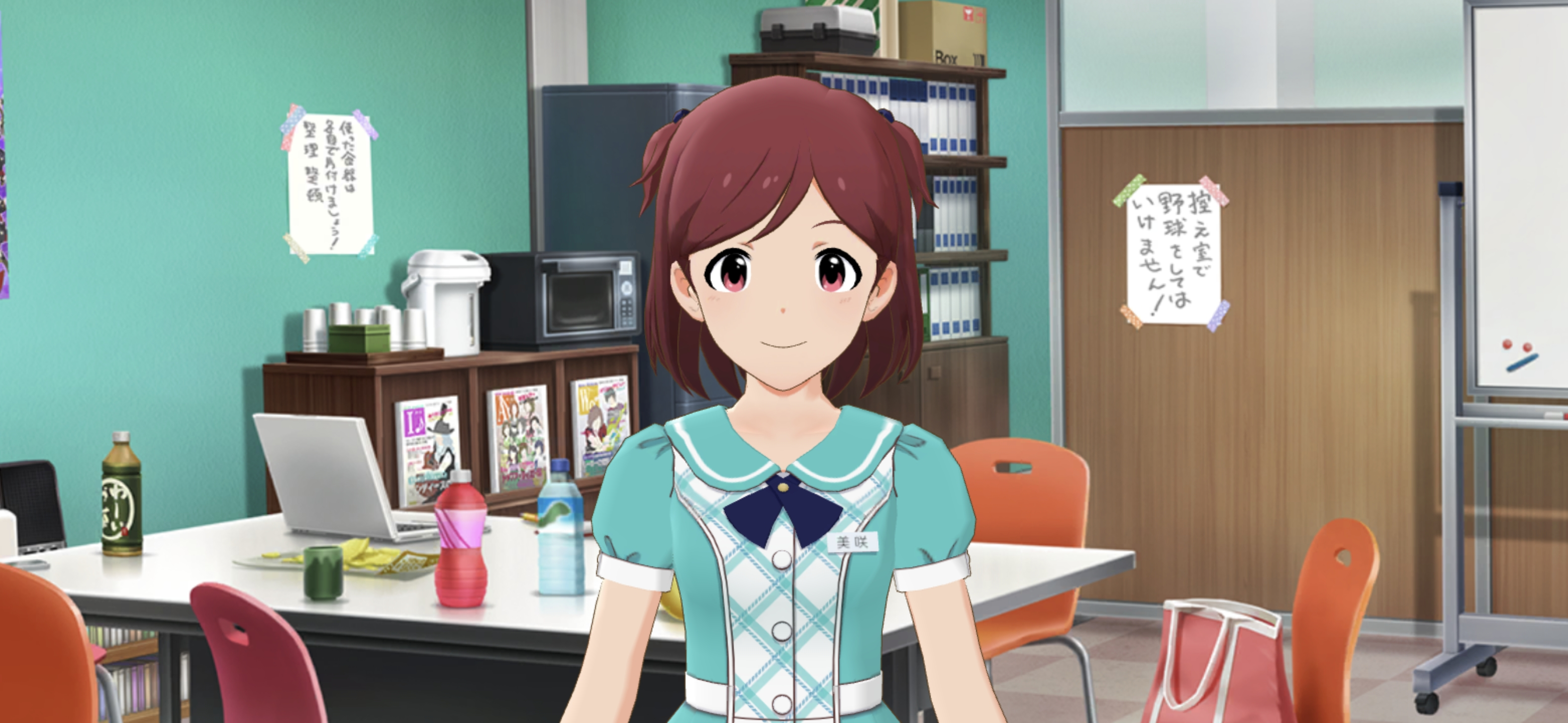 미사키 : 에헤헤♪ ......아. 그리고 사장님이 부르셨어요! 감사제 기획 내용을 확인하고 싶으시대요.