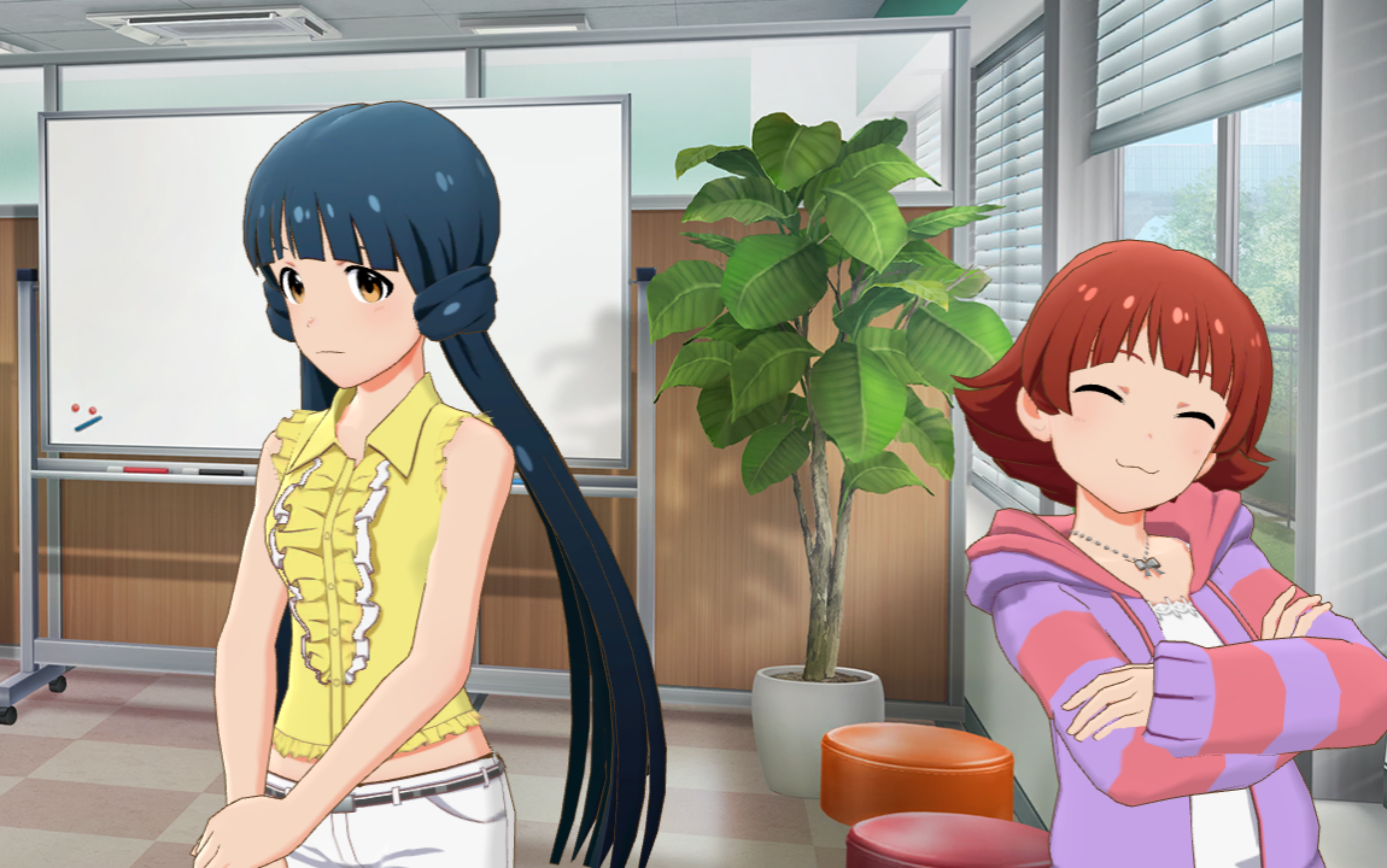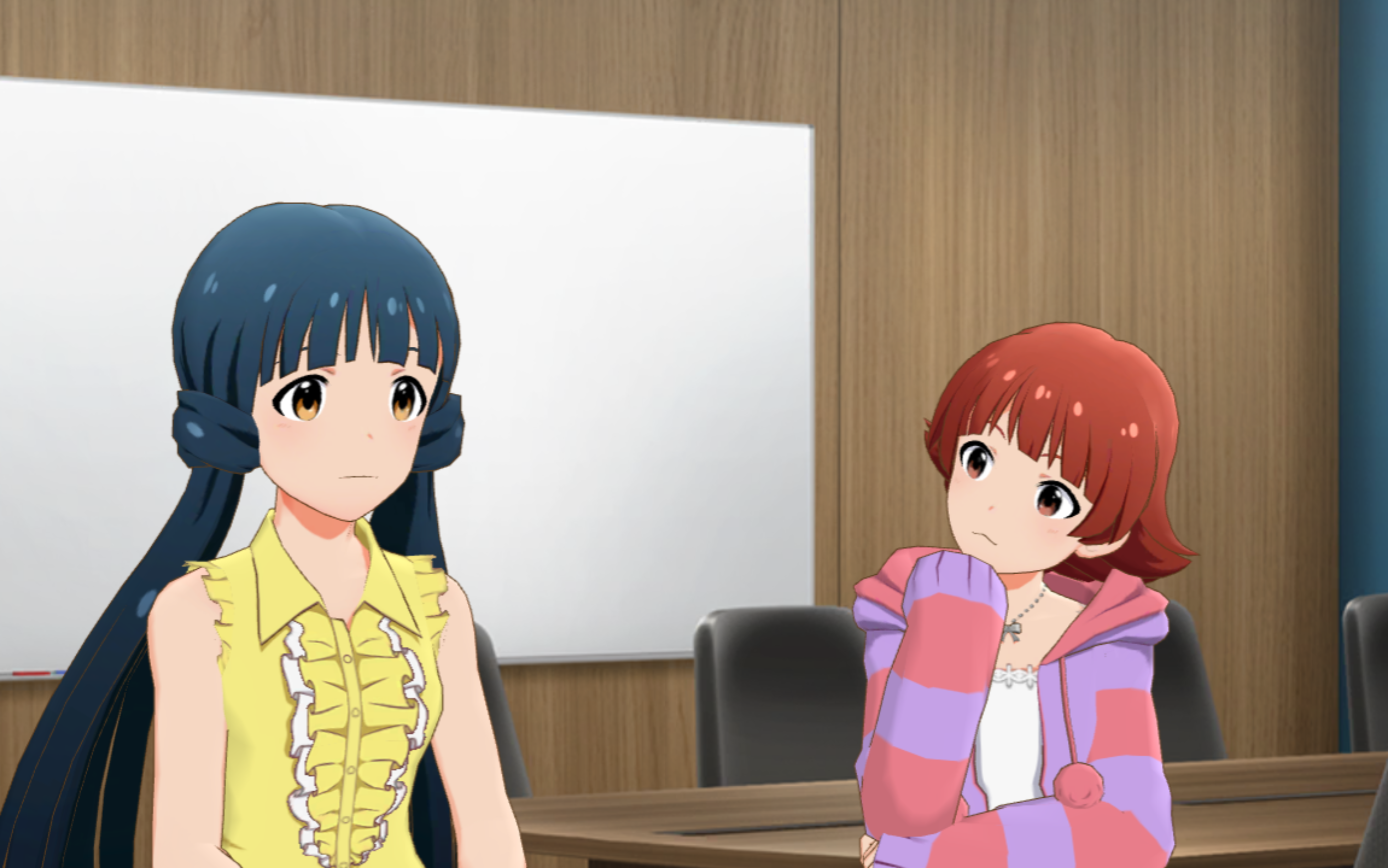 아카네_ 뜨끔뜨끔. 아니…… 지금은 스케줄 때문에 중요한 회의를 하고 있었거든…… 그치!?
